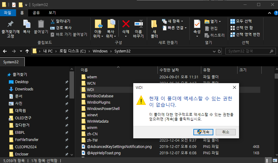 의미추정: COM(프로세스 간 통신)에 권한이 부족해서 제대로 액세스 못함