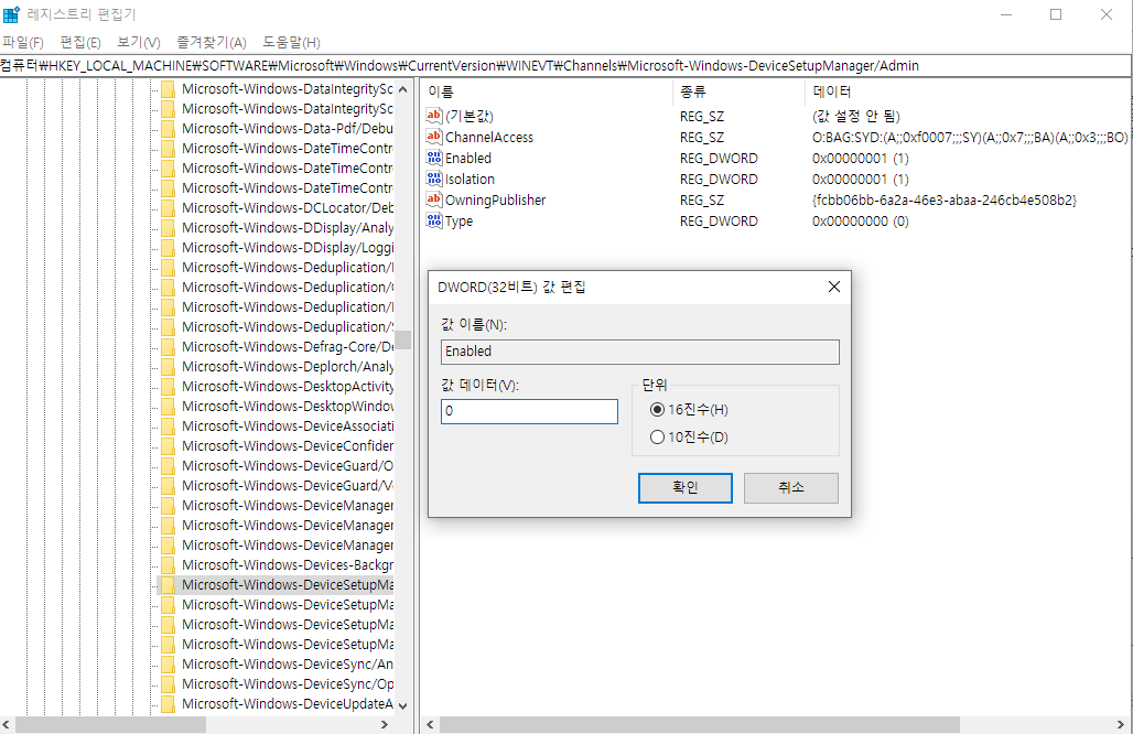 {8444a4fb-d8d3-4f38-84f8-89960a1ef12f} 공급자의 특성을 설정하는 동안 오류가 발생했습니다. 오류: 0xC0000001