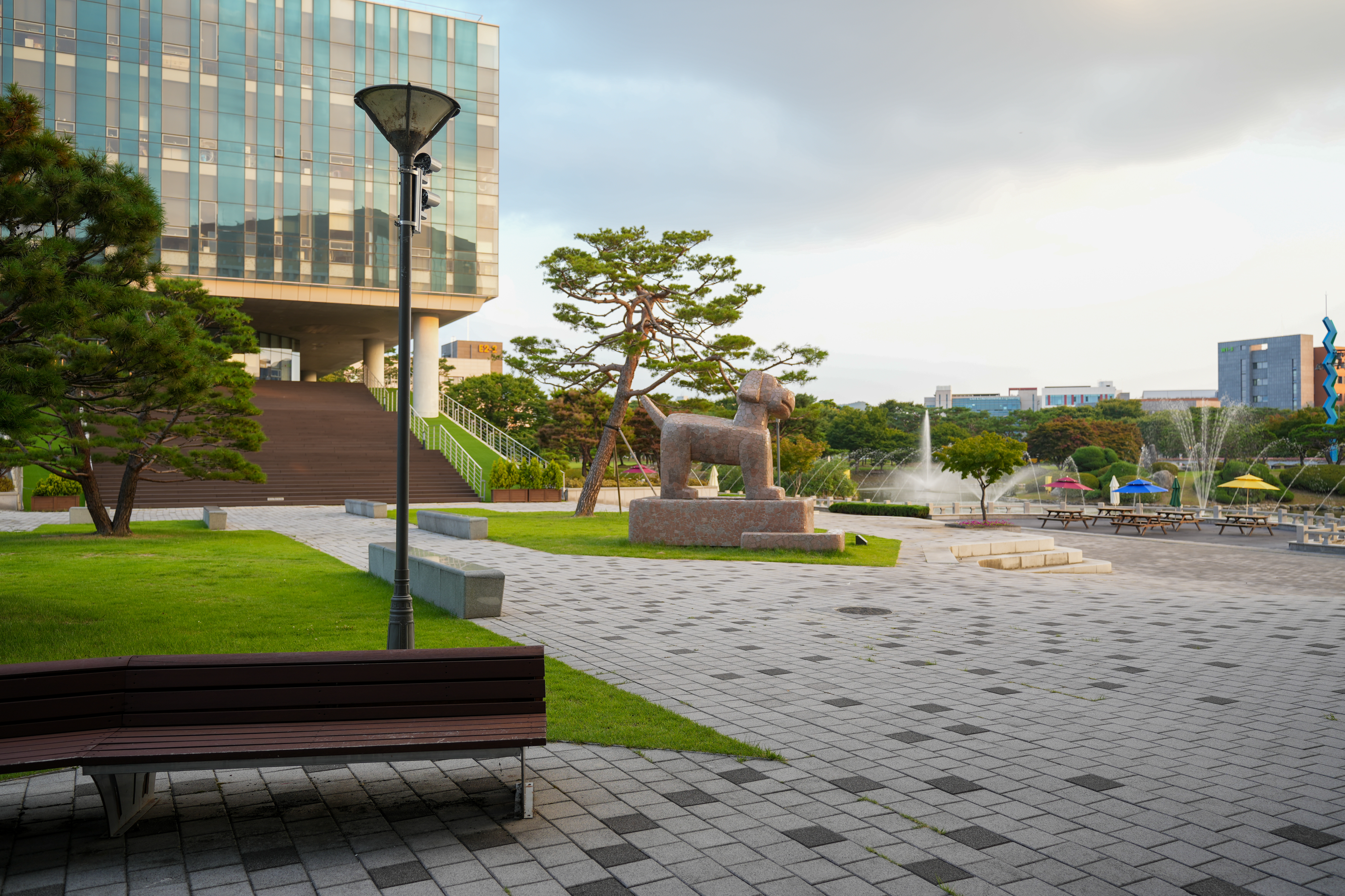 연못의 반대편에 있는 텅 빈 공터였는데, 강아지 모양 조형물이 어느 날 생겼다. 자세히 보면 그 곳에서 물줄기가 나온다.