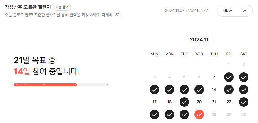 그러던 와중, 블로그 관리 페이지에서 3주간 매일 글 쓰는 챌린지를 시작한다고 예고? 광고? 같은 것들이 계속 떠서 약간의 관심이 생겼었다. 평소에도 글을 못 쓰는 편이라고는 생각하지 않았고, 그 동안 모아 놓은 잠재 주제들도 많으니 하루에 주제 한 개만 골라잡고 써도 3주는 뚝딱이라고 생각해서 사전 예약을 넣어 놨었다. 예약이라고 해 봐야 당일에 알림이 뜨는 것 정도이긴 했지만, 어쨌든 시작한 이상 마무리까지 가보자는 의지의 표명이었다.